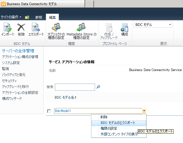 SharePoint から AdskVaultModel.bdcm ファイルをエクスポートするには、次の手順を実行します。