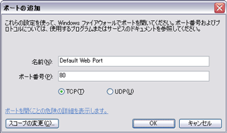 - ポート番号に 80 と指定して、[次へ]をクリックします。
