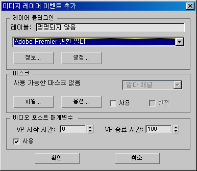 레이어 이미지 이벤트 추가 및 레이어 이벤트 편집 대화상자에 있는 컨트롤은 같습니다.