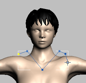 키를 누른 상태로 모델 엉덩이 주위를 드래그합니다. 그러면 스플라인 세그먼트가 평평해집니다.