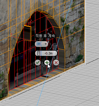 아치에 대한 잘라내기가 완료되면 아치를 돌출시킬 수 있습니다.