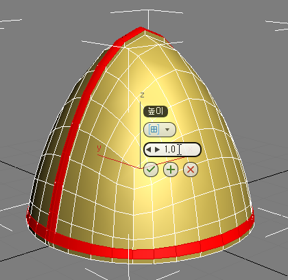 편집 패널에서 다음으로 헬멧의 테두리와 수직 이음새를 구성할 돌출을 두 개 추가합니다.
