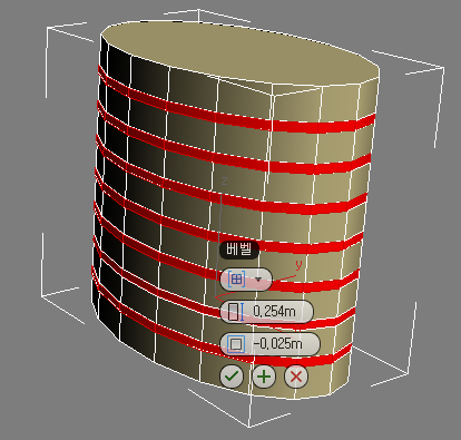 3ds Max에 베벨 도구에 대한 캐디 컨트롤이 표시됩니다.