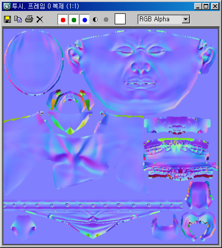 분산 맵을 렌더링하는 동시에 3ds Max에서 법선 범프 맵을 TGA 이미지로 렌더링합니다. 이제 이 이미지를 살펴보고 혼합 결과를 확인합니다.