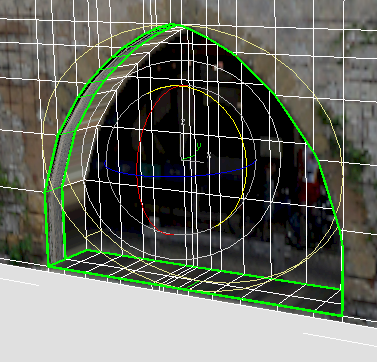 키를 누른 채 클릭하여 아치의 내부를 따라 외부 면을 선택합니다. 이러한 면은 석재 벽의 폭에 해당합니다.