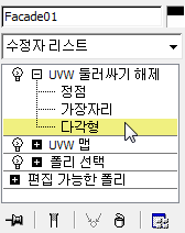 UV 편집 롤아웃에서 UV 편집기 열기를 클릭하여 UVW 편집 대화상자를 표시합니다.