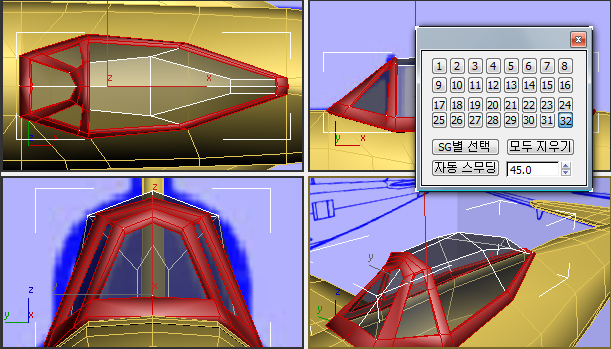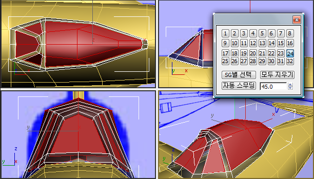 드롭다운 부분에서 3ds Max에 스무딩 그룹 대화상자가 열립니다.