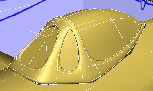 스무딩 그룹을 고려하여 캐노피의 유리와 금속 부분 사이에 잘 정의된 가장자리가 만들어졌습니다. 그러나 방풍 유리의 모양이 너무 둥급니다. 이 문제는 다음 절차에서 수정합니다.