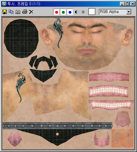 이 이미지 파일은 둘러싸기 해제된 모델을 기반으로 이전에 만든 병사 얼굴의 분산 비트맵입니다.