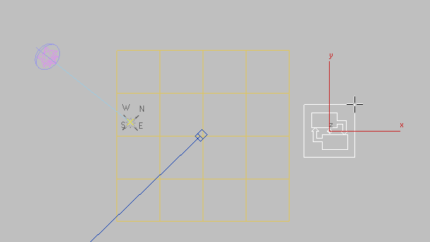 - 오브젝트 유형 롤아웃에서 PF 소스를 클릭하여 켭니다. 맨 위 뷰포트에서 평면 외부의 아무 곳이나 드래그하여 파티클 흐름 소스 아이콘을 배치합니다.