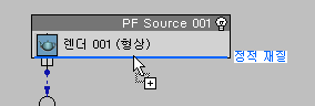 - 기지에서 정적 재질 연산자를 PF 소스 001 이벤트로 드래그합니다. 렌더 001 연산자 바로 아래에 드롭합니다. 파란색 선은 삽입 점을 나타냅니다.