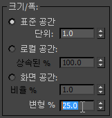 - 크기/폭 그룹의 맨 아래에서 변형 % 값을 25.0으로 변경합니다.