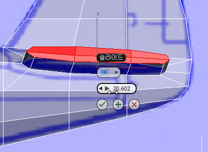 키를 누른 채 클릭하여 꼬리날개 기준에 있는 면을 선택합니다.