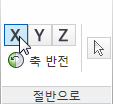 절반으로 패널에서 X가 선택된 축인지 확인한 다음