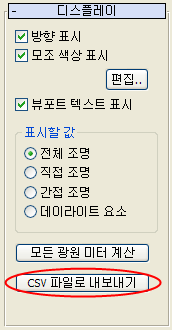 3ds Max에서는 라이트 미터 오브젝트에서 생성한 데이터를 프로젝트 디렉토리의 ₩export 폴더에 CSV 형식으로 저장합니다.