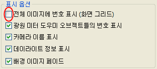 표시 옵션 그룹에서 전체 이미지에 번호 표시 (화면 그리드)를 끕니다.