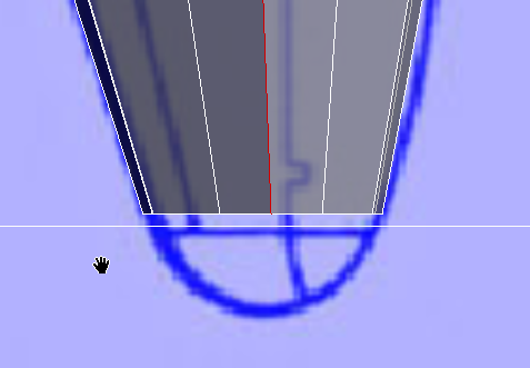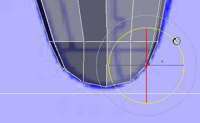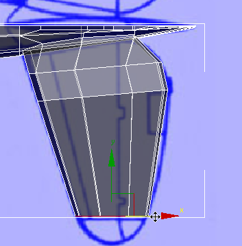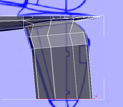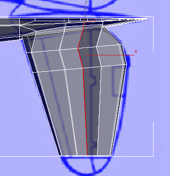(가장자리) 하위 오브젝트 수준으로 이동합니다. 을 사용해 꼬리날개의 가장 넓은 면에서 경도 가장자리 중 하나를 클릭하여 선택합니다.