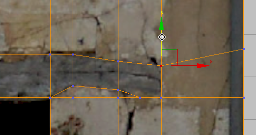 비트맵에서 볼 수 있듯이 상인방은 윤곽이 불규칙적입니다. 면이 나무 보의 윤곽에 해당되도록 편집합니다.