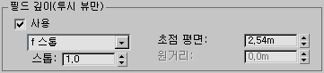 필드 깊이 그룹에서 드롭다운 리스트가 F 스톱(조리개 설정)으로 설정된 상태로 유지됩니다. 그러면 초점이 맞지 않는 오브젝트의 블러 수준을 지정할 수 있습니다.