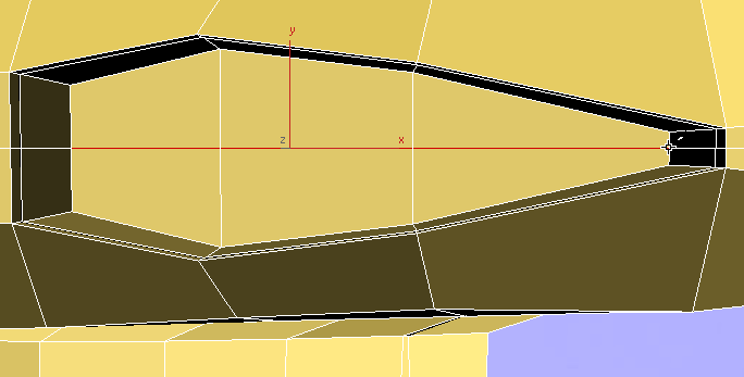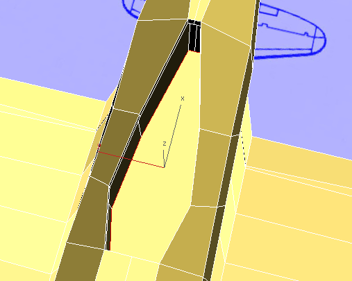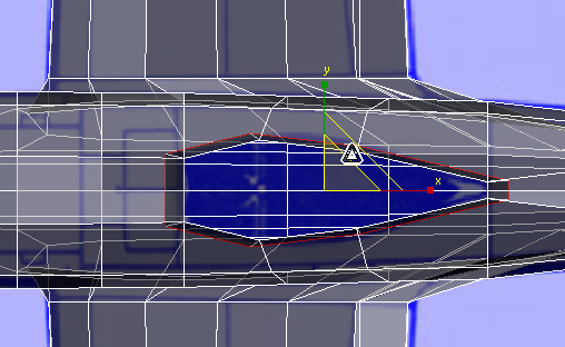 키를 누른 채 클릭하여 조종석 내부의 전면 벽 맨 아래에 있는 다각형 두 개를 선택합니다.