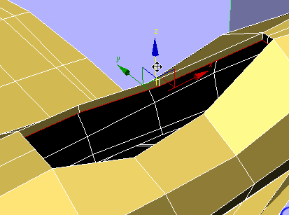 키를 누른 채 클릭하여 조종석 바닥에서 앞쪽 가장자리 루프가 중지하는 두 정점을 선택한 다음 리본