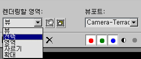 - 렌더링할 영역 드롭다운 리스트에서 뷰를 선택하여 다음에 렌더링할 때 전체 장면이 포함되도록 합니다.