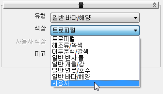 - 물 롤아웃에서 색상 드롭다운 리스트를 열고 사용자 정의를 선택합니다.