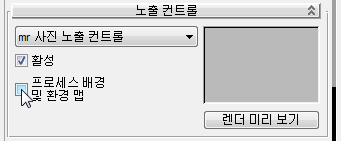 - 노출 컨트롤 롤아웃에서 프로세스 배경 및 환경 맵이 꺼져 있는지 확인합니다.