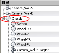 4개의 바퀴와 스티어링 휠이 어떻게 섀시 오브젝트의 하위가 되는지 확인합니다. 이 계층은 3D 자동차 모델에서 일반적으로 사용됩니다.