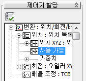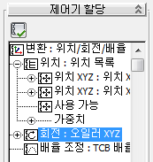 애니메이션 제어기 롤아웃에서 위치 XYZ 트랙을 확장하여 방금 만든 스크립트에서 할당된 리스트 제어기 중 하나를 표시합니다.