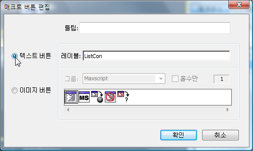 3ds Max에서 버튼이 텍스트 버튼으로 변경됩니다.