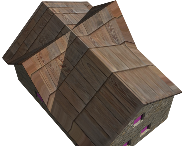 그러나 지붕에는 문제가 있습니다. 두 개의 박공이 있는 경우 UVW 맵을 사용하여 간단하게 패턴을 매핑할 수 없습니다.