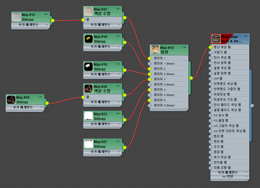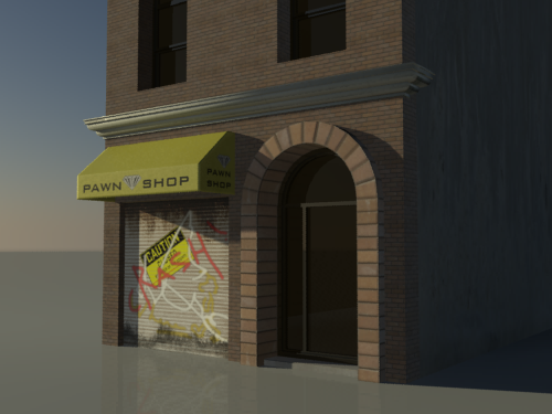 완전히 합성된 셔터 문, 범프 매핑을 사용하여 렌더링됨