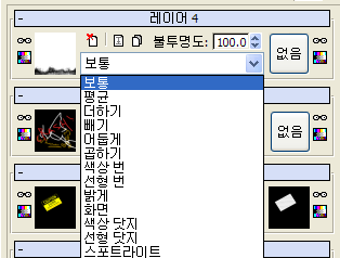 지금까지 사용했던 법선 모드 외에도 다양한 방법을 사용하여 레이어를 혼합할 수 있습니다.