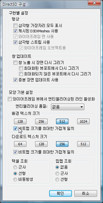 Direct3D 드라이버에 대한 구성 대화상자
