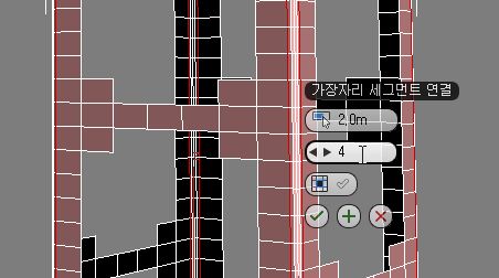 - 가장자리 편집 롤아웃에서 모따기 버튼 옆(주 버튼의 바로 오른쪽)에 있는
