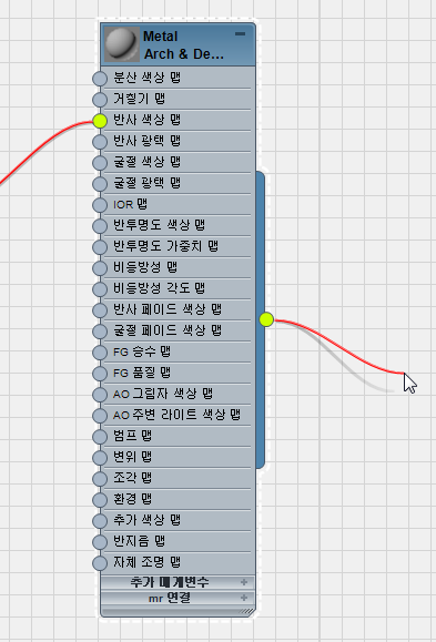 - 이번에는 오른쪽에 있는 둥근 컨트롤인 금속 재질 노드의 출력 소켓에서 드래그하고