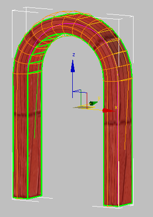 아치 오브젝트가 매핑의 윤곽과 횡단면을 표시하는 케이지 기즈모로 둘러싸입니다.