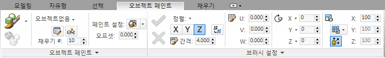 오브젝트 페인트 도구 설정: