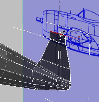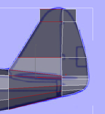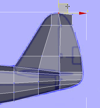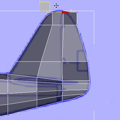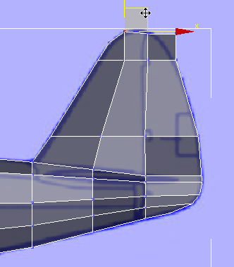 키를 누른 채 클릭하여 꼬리의 위쪽 부분을 "늘일" 면 두 개를 기체의 맨 위에서 선택합니다.