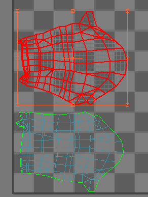 벗기기 모드에서는 클러스터의 고정된 정점 간에 UVS를 확산시킵니다. 두 개 이상의 핀이 필요하므로 UVW 둘러싸기 해제 수정자는 기본적으로 보이지 않는 핀 두 개를 선택합니다. 정점을 이동하면 이동한 정점 자동고정에서 자동으로 정점을 고정시킵니다. 핀이 하나만 있는 경우에는 다른 핀이 계속 보이지 않고 자동으로 선택됩니다. 따라서 예기치 않은 방식으로 클러스터의 모양이 변경되므로 다른 정점을 이동하기 전에 클러스터의 주변에 있는 두 개의 정점을 직접 고정하는 것이 좋습니다.