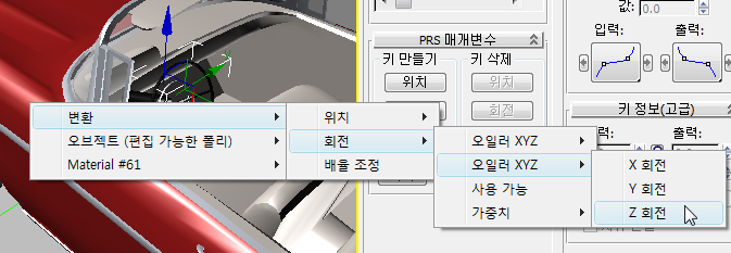 스티어링 휠이 Z축을 중심으로 -280도 회전