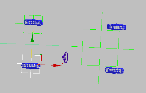 키를 누른 채 두 개의 바퀴 도우미 오브젝트를 선택한 다음 Dummy_CAR 오브젝트로 드래그합니다. 이렇게 하면 도우미가 Dummy_CAR 오브젝트의 하위로 연결됩니다.