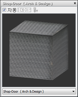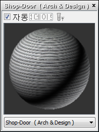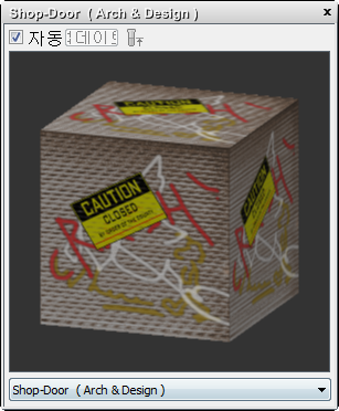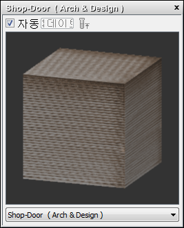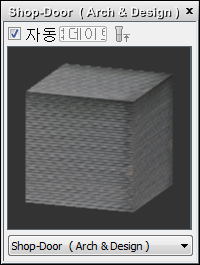 첫 번째 샘플 슬롯에는 Shop-Door라는 아키텍처 및 디자인 재질이 들어 있습니다. 이 재질은 롤업 셔터 오브젝트(door-sec)에 이미 적용되어 있습니다.