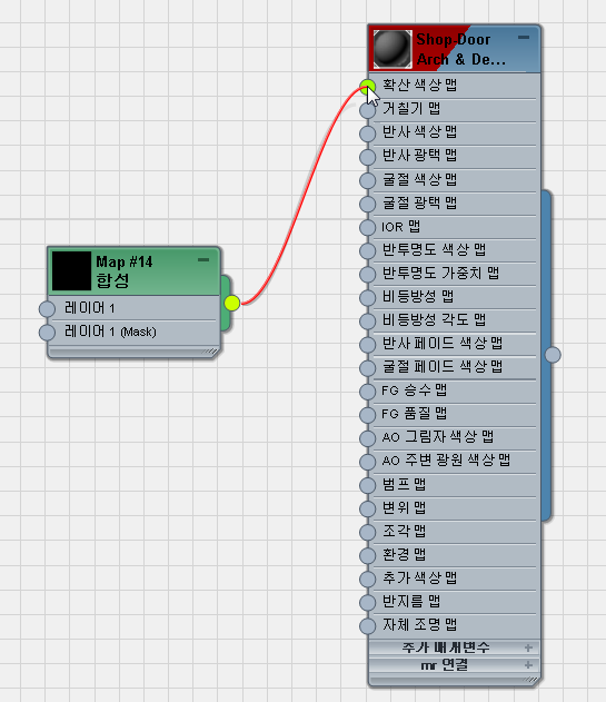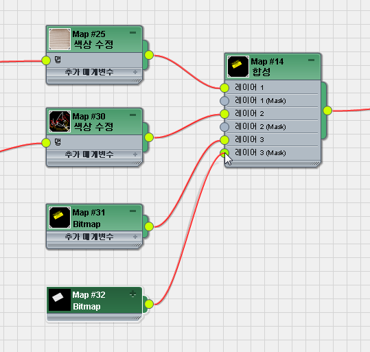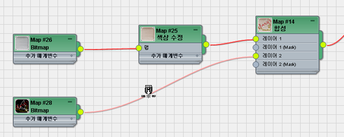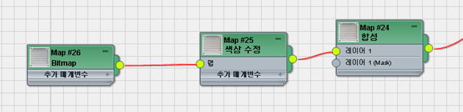 3ds Max에 매개변수 편집기의 색상 보정 컨트롤이 표시되어 비트맵과 합성 맵 사이에 색상 보정 맵 노드가 삽입됩니다.