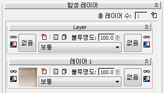 이제 합성 맵의 레이어 1 롤아웃의 텍스처 버튼에 shutters.jpg 텍스처가 표시됩니다. 이 텍스처가 기본 합성 맵 레이어가 됩니다.