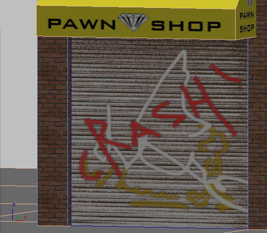 장면은 마을의 황량한 지역에 있는 전당포로 구성됩니다. 상점 정면에는 한 가지 중요한 요소, 즉 판유리 창을 보호하는 강철 셔터가 누락되어 있습니다. 사용자 태스크는 셔터의 사실적인 합성 맵을 만드는 것입니다.