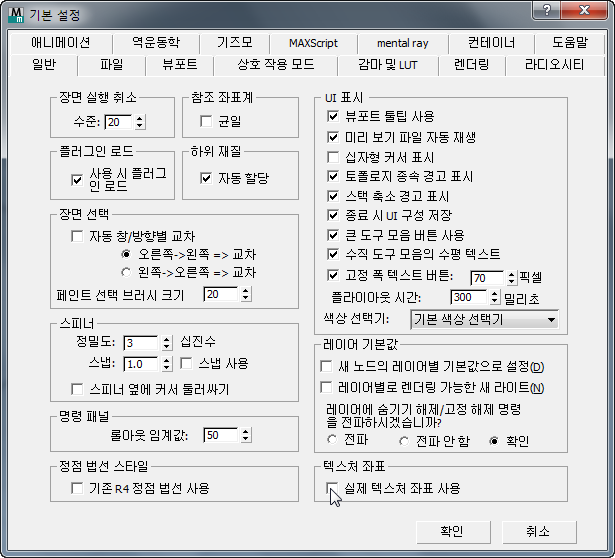 텍스처 좌표 그룹을 선택한 다음 실제 텍스처 좌표 사용이 꺼져 있지 않으면 끕니다. 확인을 클릭합니다.