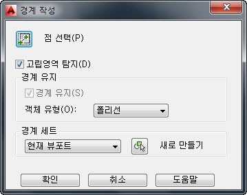 키를 누릅니다. AutoCAD에 경계 작성 대화상자가 열립니다.