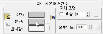 컴퓨터 그래픽 창시자인 제임스 블린(James Blinn)의 이름을 딴 "블린"은 표준 재질에서 사용하는 기본 셰이더 유형입니다. 셰이더는 재질과 라이트가 상호 작용하는 방식을 결정합니다. "분산"은 기본 재질 색상을 나타냅니다. 일반적으로 셰이더 및 재질에 대한 자세한 정보는 3ds Max 도움말에서 확인할 수 있습니다.
